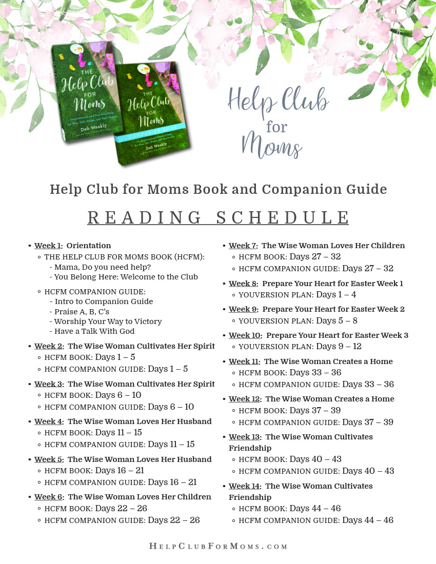 - The Help Club for Moms and Companion Guide Reading Schedule Spring 1 and The Help Club for Moms and Companion Guide Reading Schedule Spring 2